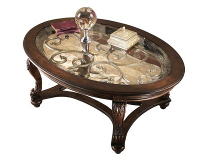 Their fanciful pattern is echoed in the carvings and curves of the richly stained legs and stretchers. Norcastle oval coffee tablethis oval coffee table deserves a toast for incorporating so many elements so seamlessly. Swirls of metal accents add a lovely dimension under a beveled glass inset tabletop. Curvaceously beautiful, the norcastle rectangular coffee table takes a lovely turn on traditional style. This oval coffee table deserves a toast for incorporating so many elements so seamlessly.